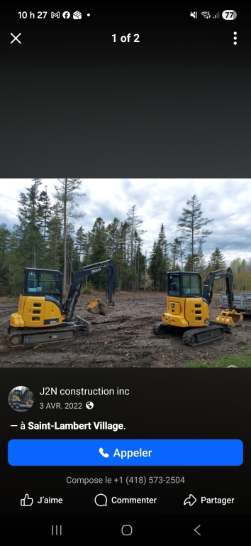 Disponible pour excavation avec deux pelles 35g (3.5t)travaux de nivelage,trancher,puit percolant....démolition trottoir beton